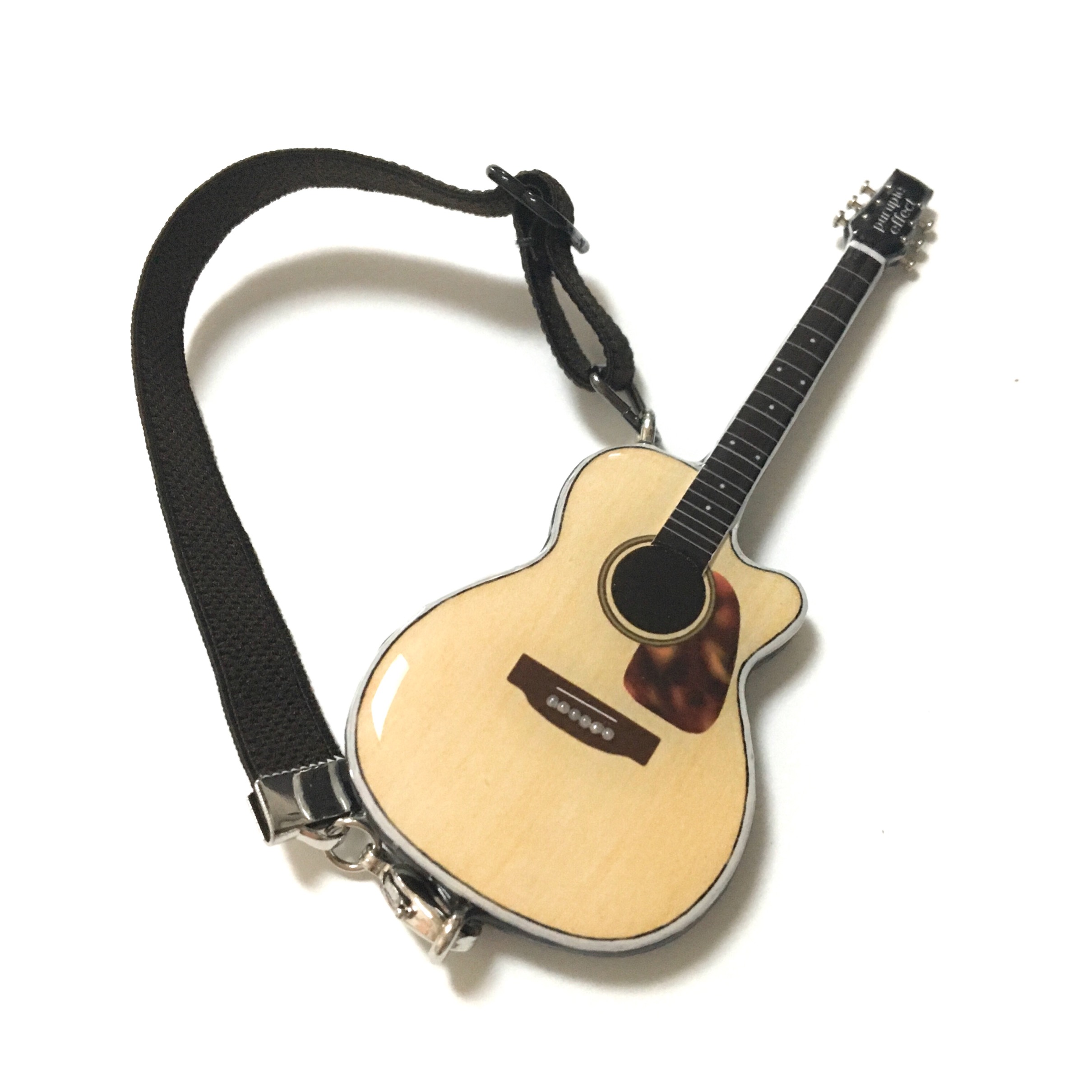 肩掛けストラップのような形状の紐を通すことによって、より身近な印象のギターを表現します。