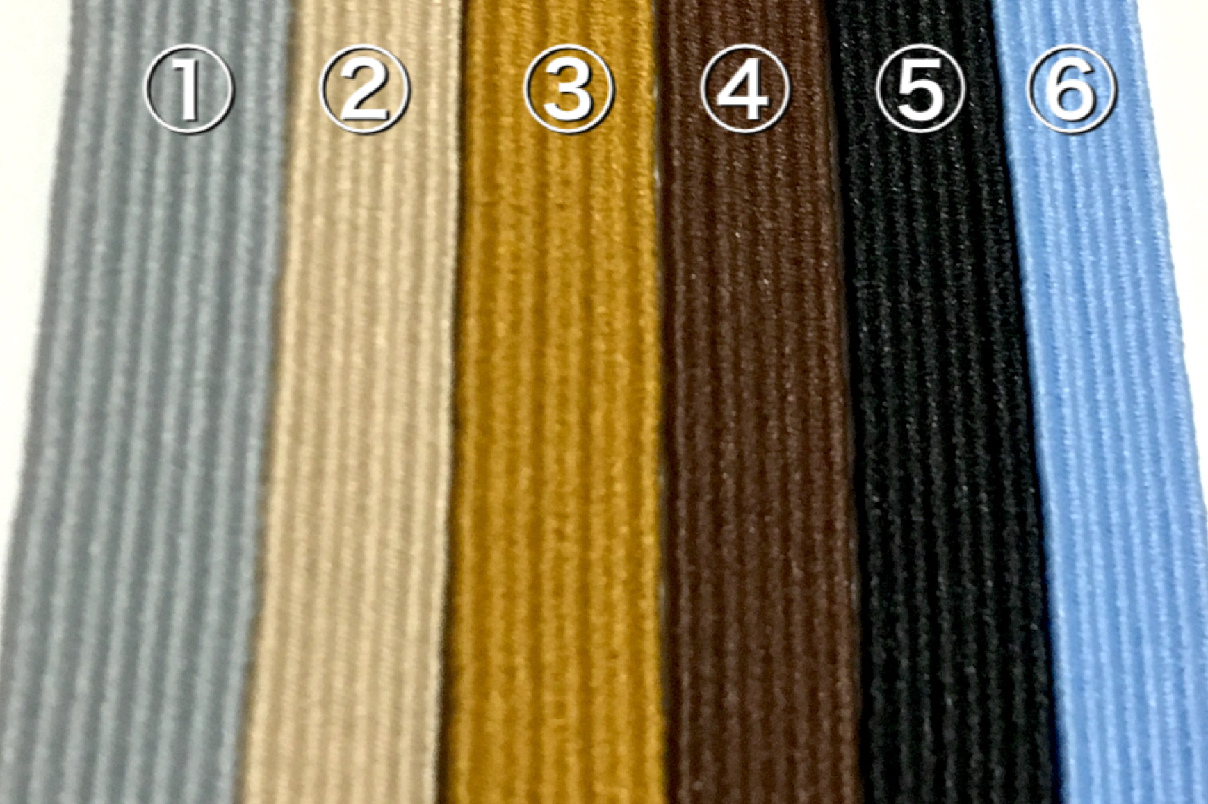 ①~⑥は薄手のゴム紐です。