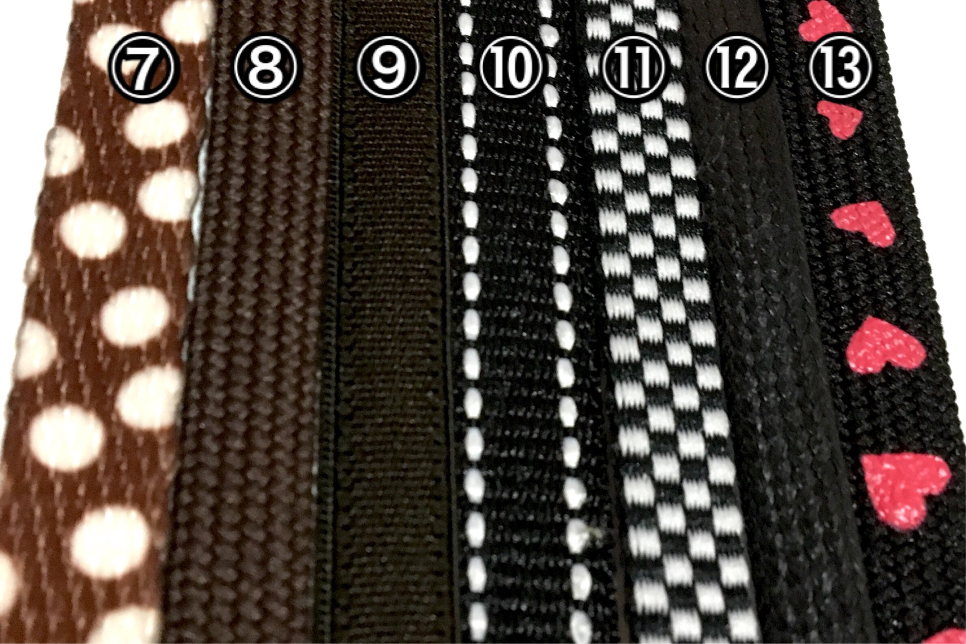 ⑦~⑬は伸縮性のない紐です(⑨を除く)