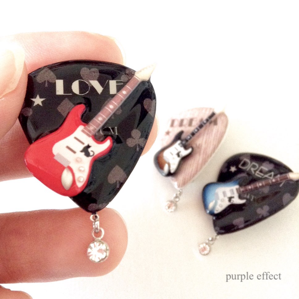 ピックwithギターのブローチ。